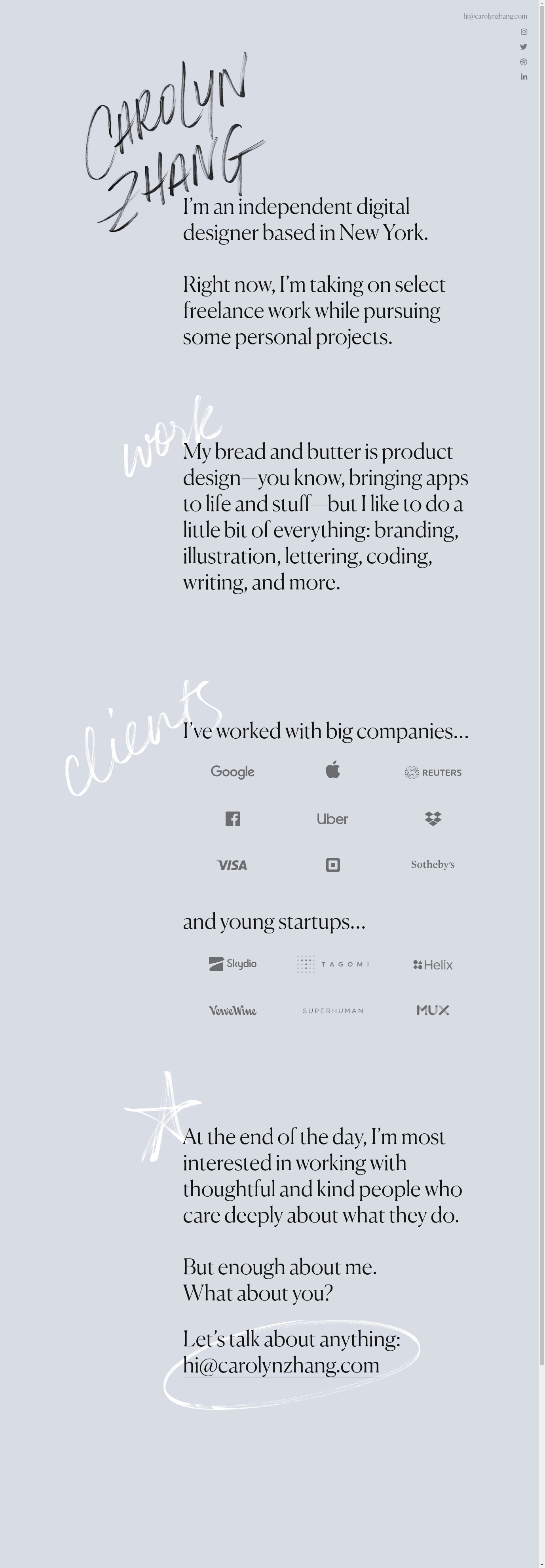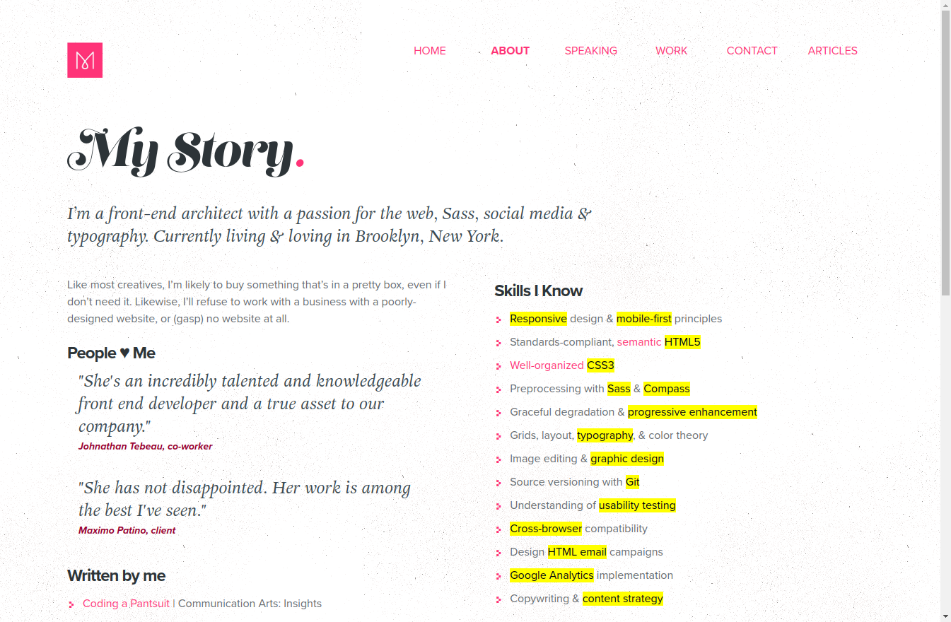 Nice use of handwriting styled anchor-points for different sections, mixes well with the serif font used for the body