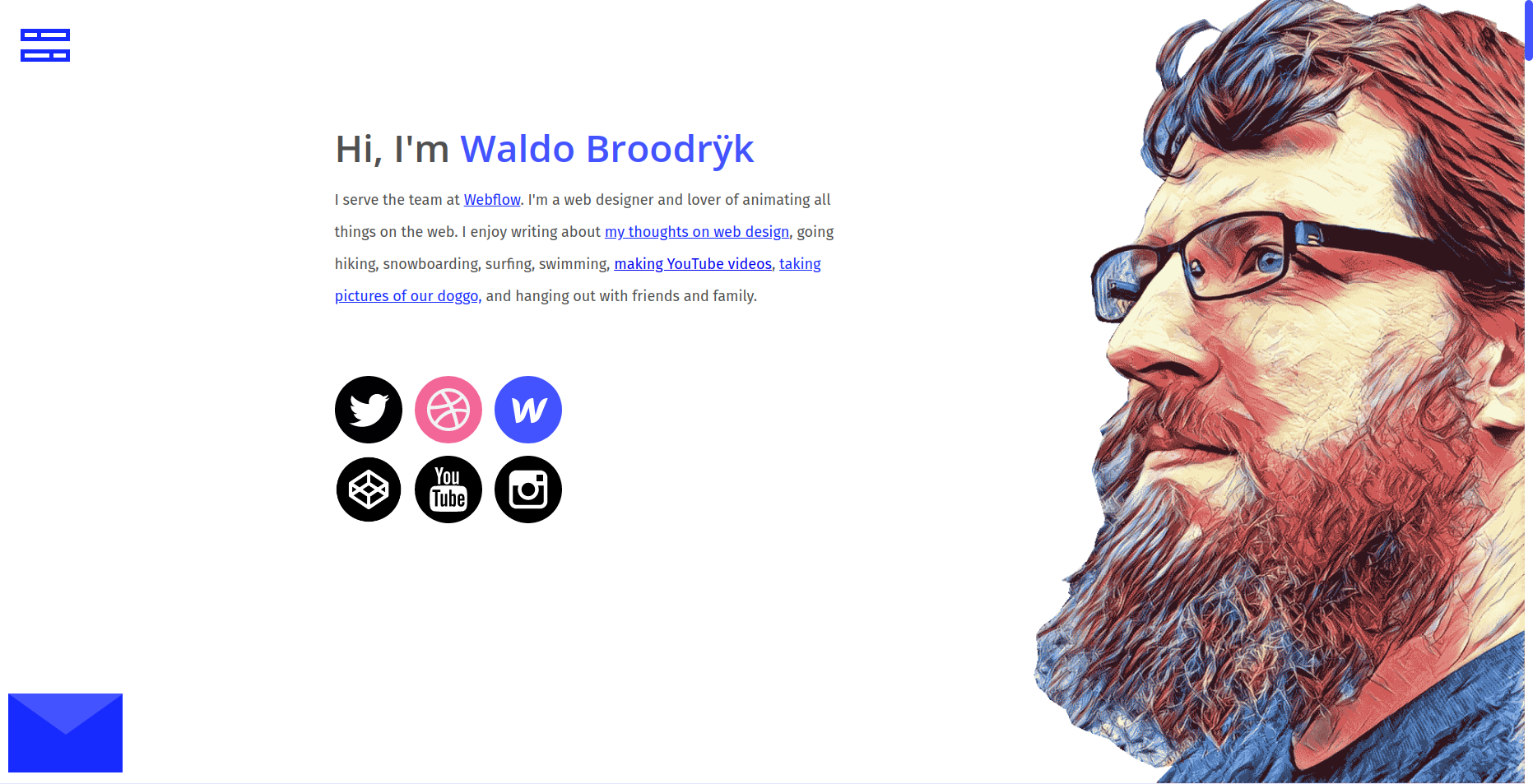 Really cool animated SVG at the top of the page where “glowing marbles” fall through a maze on scroll