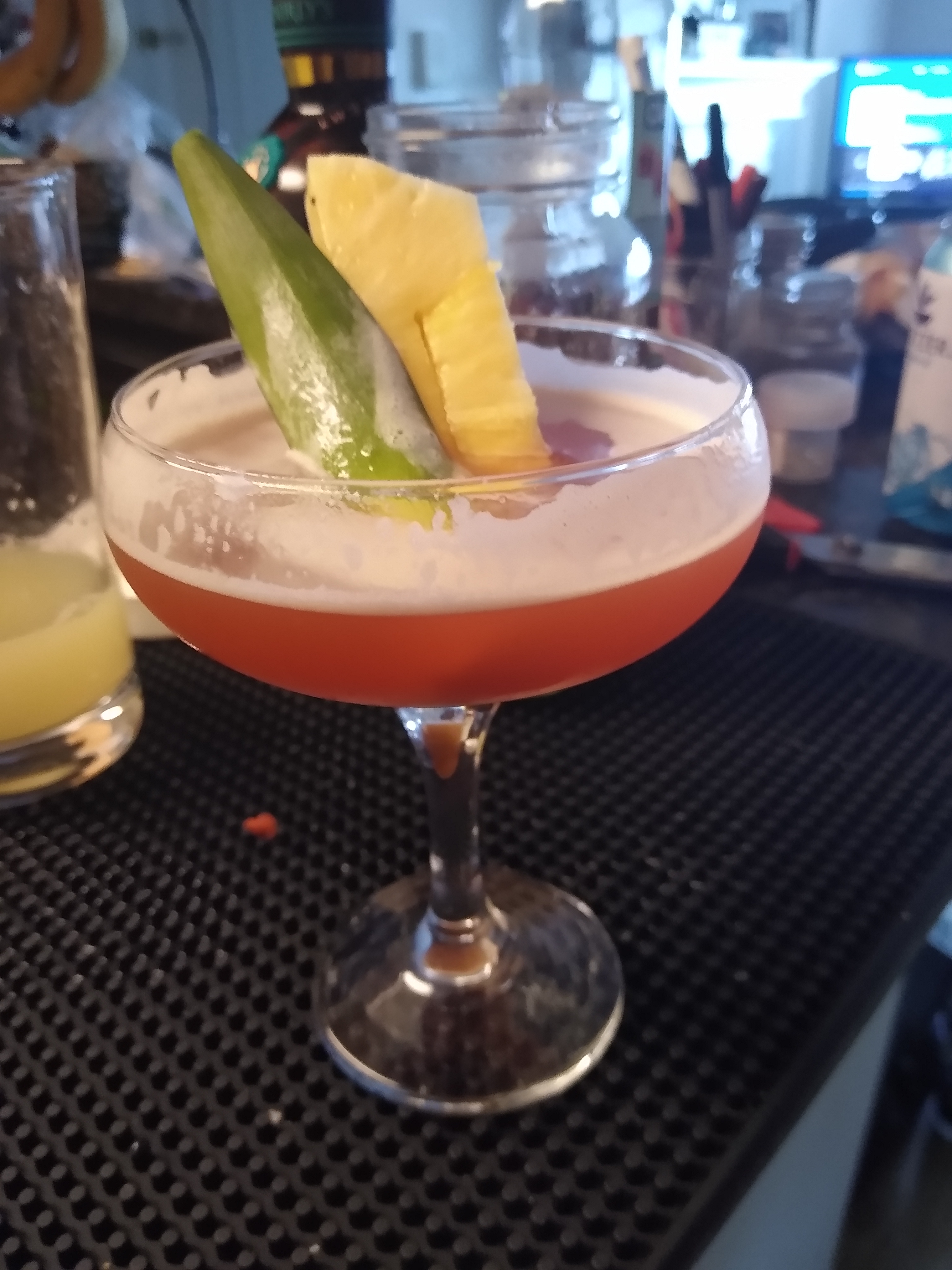 Jungle bird Jungle Bird¶ rating: B 2oz pineapple juice ½oz fresh lime ½oz SC demerara syrup ¾ campari 1½ blended black rum (#5) Garnish w/ Pineapple fronds