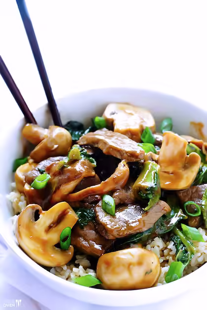 Increase heat to high and heat 2 Tbsp. oil in same skillet. Cook beef, tossing often, until browned on all sides, 5–8 minutes. Transfer to bowl with mushroom mixture.